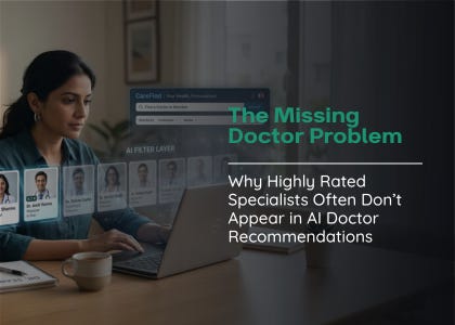 The Missing Doctor Problem: Why Highly Rated Specialists Often Don’t Appear in AI Doctor Recommendations
